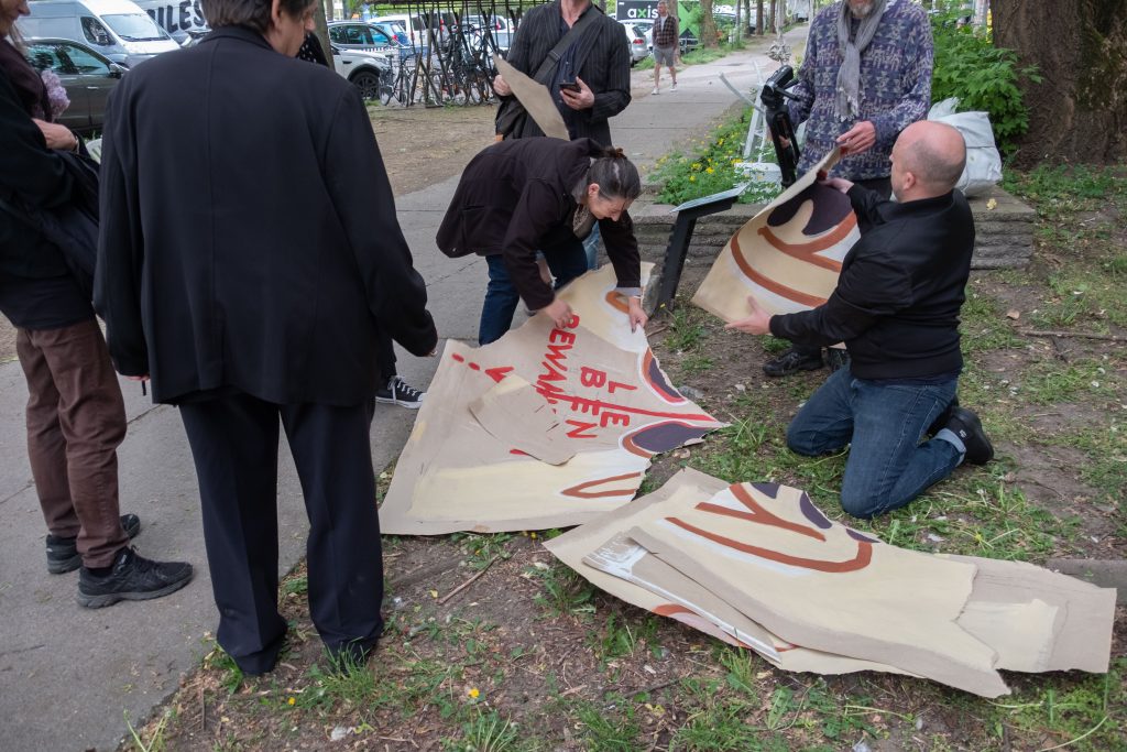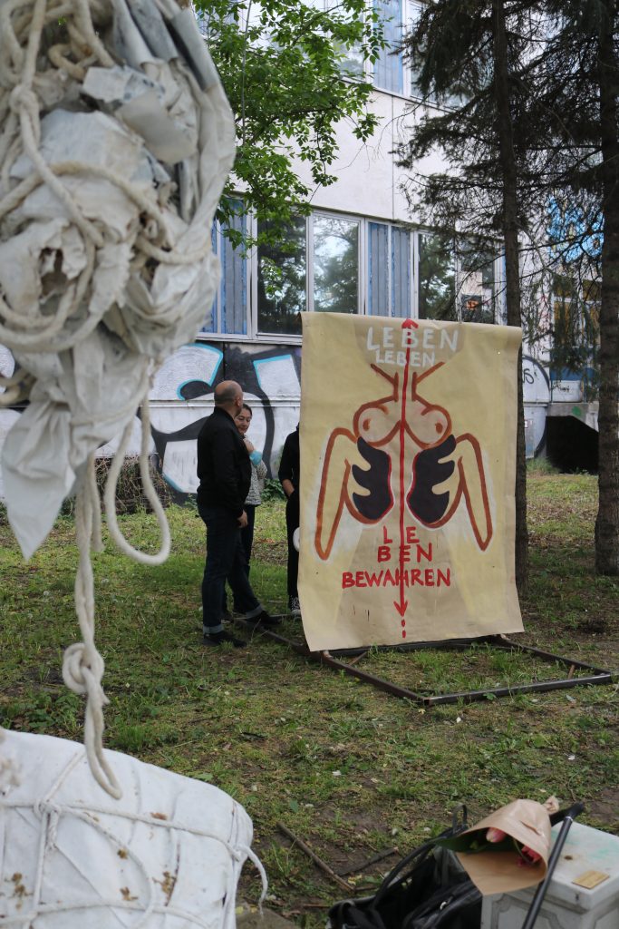 Kurz zur Geschichte: Einst entstanden aus der Not bevorstehender Verdrängung aus ihren Ateliers und der damit einherlaufenden Sorge „Wohin mit den teils raumhohen Skulpturen?!“ besetzen die KEP-Künstler Raimund Schucht und Thomas Weidner ein Stück Wiese vor dem Atelierhaus in Berlin-Pankow und rufen somit den Park für heimatlose Skulpturen aus. Durch die Eintragung als Parkfläche auf Google Maps bekommt der Skulpturenpark eine ‚offizielle‘ Legitimation.