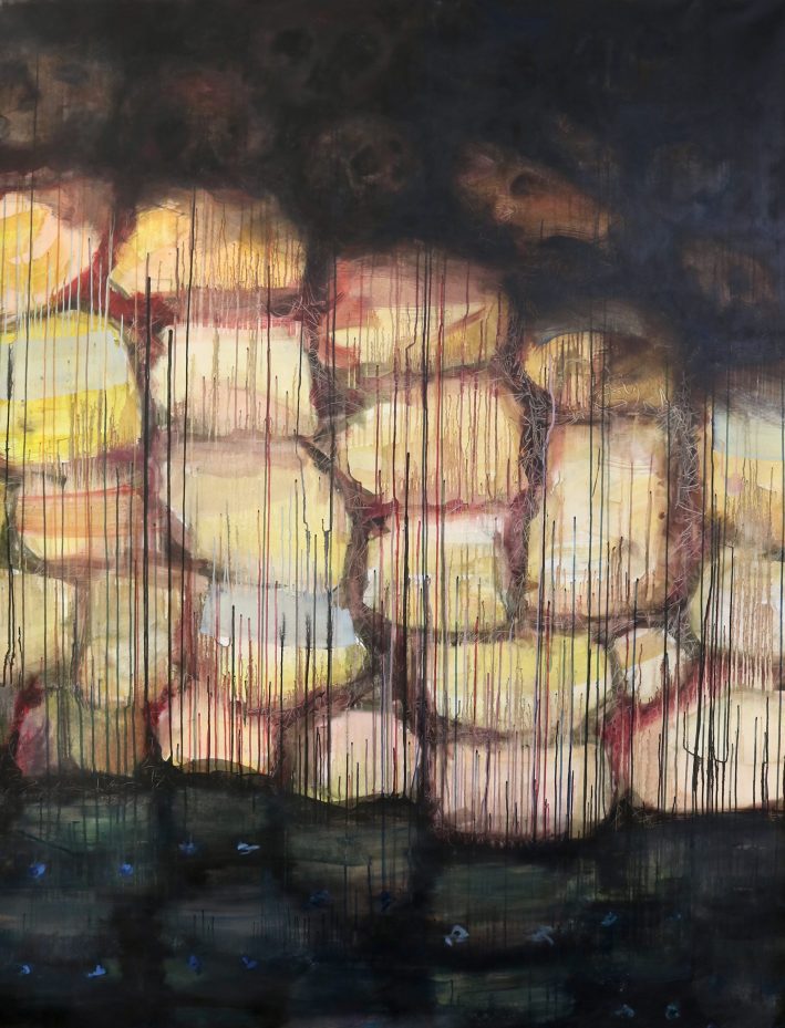 rosa Elefant hinter stummer Landschaft 2009-2023